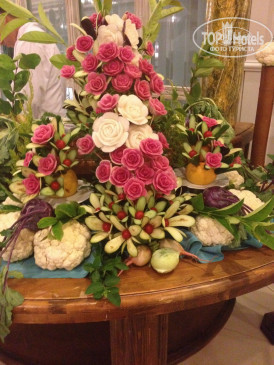 Питание в отеле в главном ресторане - хорошее. Выбор большой, все вкусно. Часто тематические вечера. Кура/ индейка/ говядина/ рыба - каждый день. По четвергам королевские креветки. Один раз был говяжий язык! Раз в 2/3 дня - красная рыба. Несколько раз - сыры с плесенью.